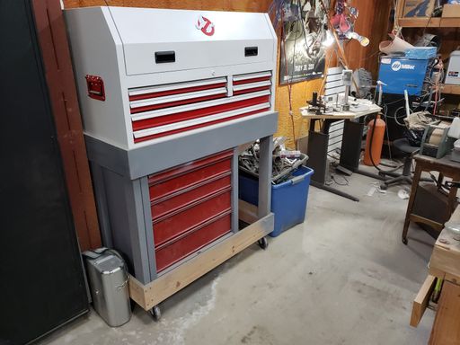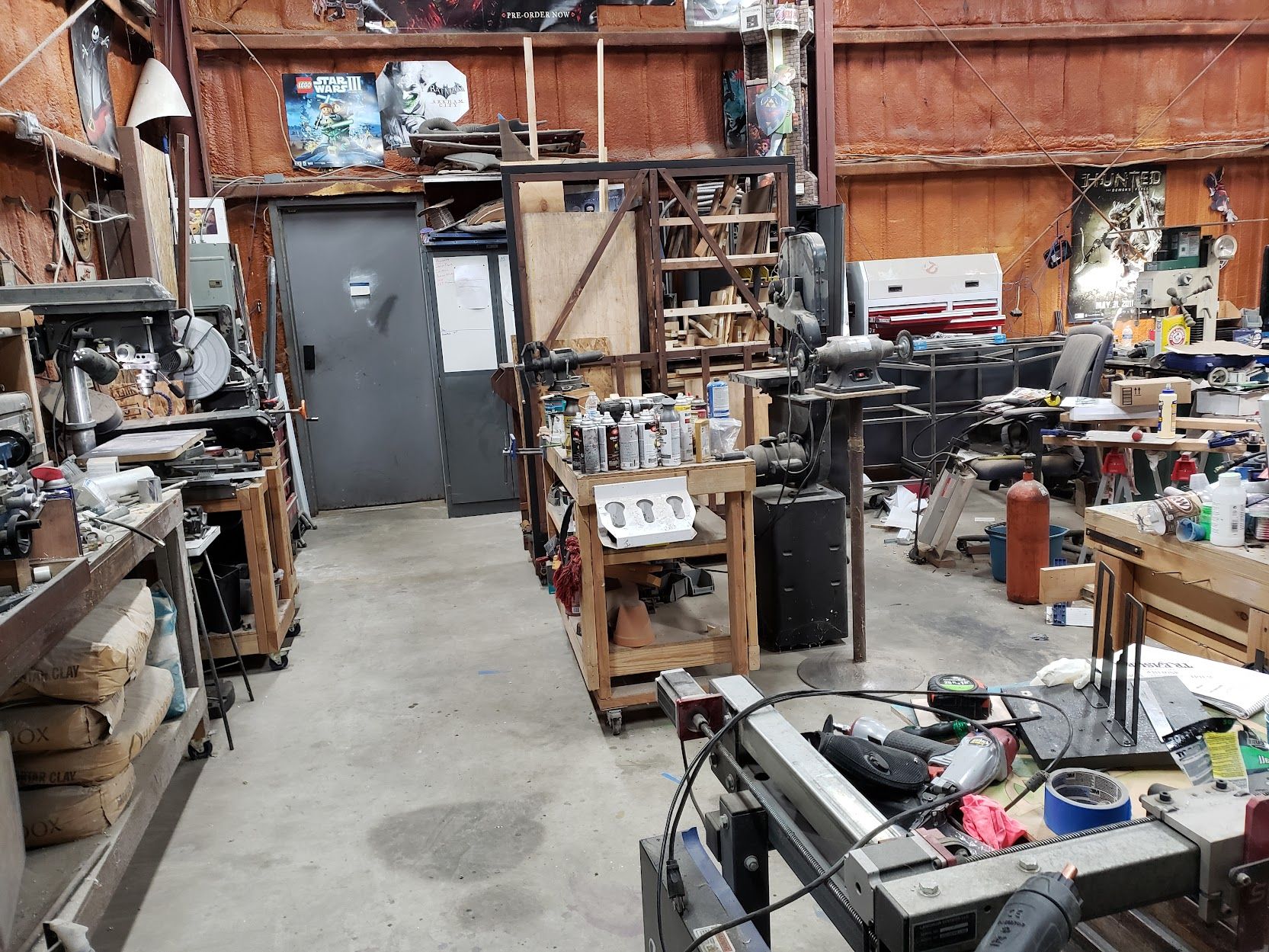 Sometimes you just get a burst of motivation and get everything organized. The chaos has been tamed, and the shop is actually clean. When I look back at these photos, two things immediately come to mind. The first is the physical pain of moving the Ecto-1—even on car dollies, that thing is a beast to push around, and my back is feeling it just thinking about it. And the second? I had completely forgotten about that workstation I tried to design next to the car.