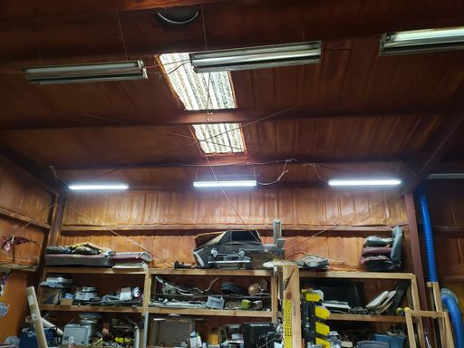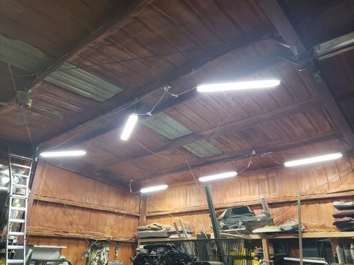 The time has come. After all these years, it's finally time to update the shop lights (well 1 row). When I first got this place, only eight of them worked. Over the years, I think I was down to two. We're talking new fixtures, LED bulbs, and—get this—they're all Wi-Fi controlled. It's like I'm finally moving into the future.