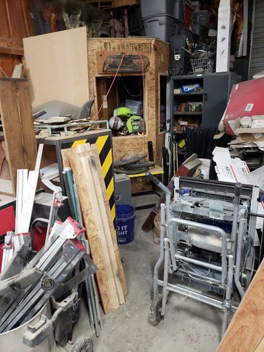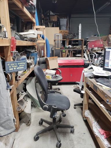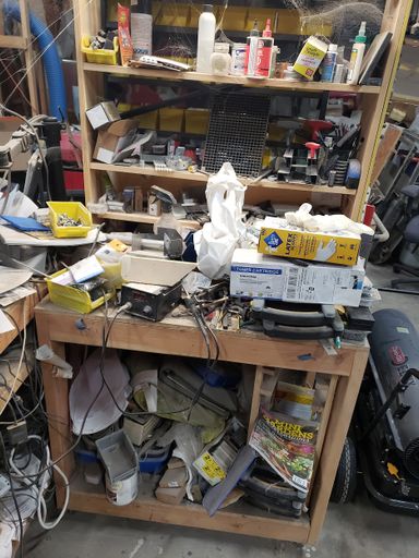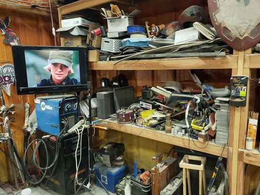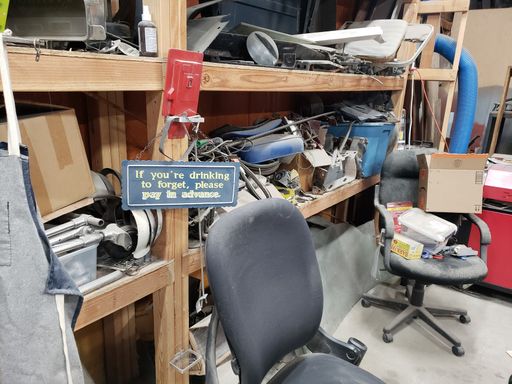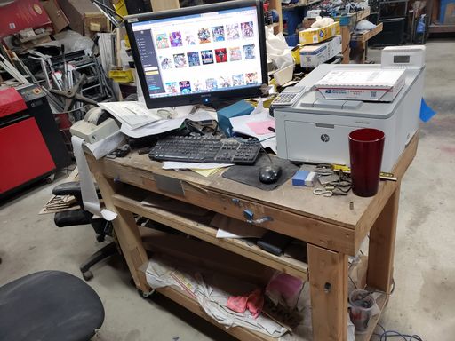 There's so much in this photo that doesn't belong to me. My shop has become long-term storage for my mother's hoarding. I'm happy to say that over the years, we've made great progress on it, but my poor office is still packed to this day.