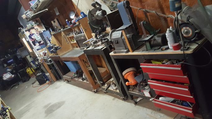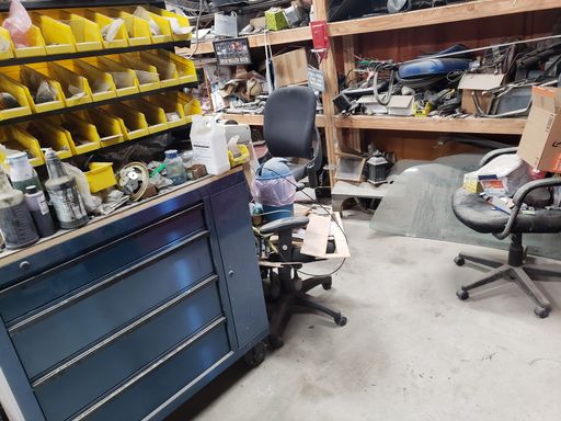 A rare moment of pristine cleanliness, right here. Whatever you do, do not look at the back half of the shop. What's back there doesn't exist, and you should not acknowledge it.