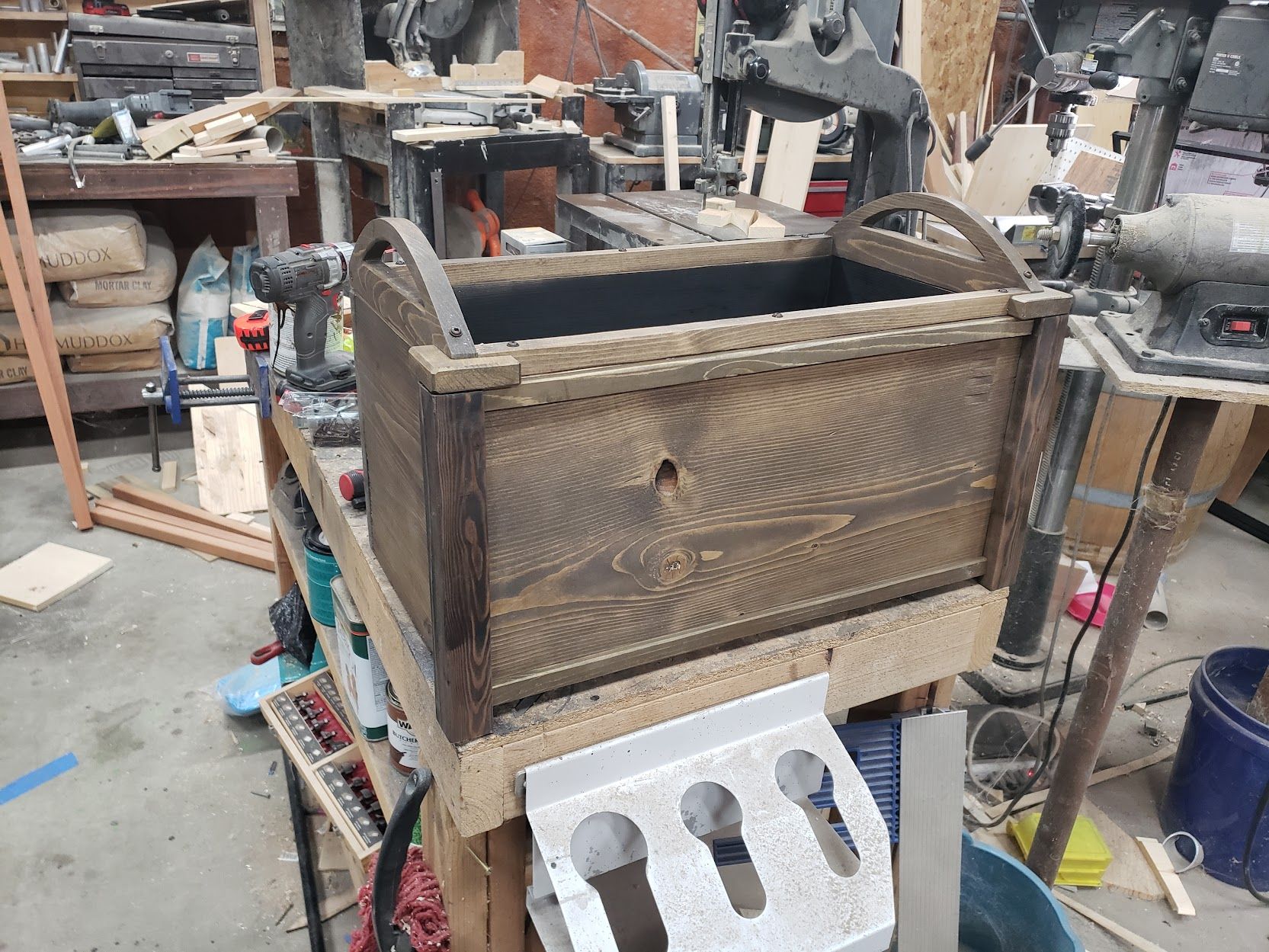We've got a removable side board here, and if you ask me why I needed it, I honestly can't tell you. My brain just said I needed it, so I built it. On top of that, I added another sign and built a scrap bin that is special in so many ways. Why just throw away scrap when you can over-engineer the container?