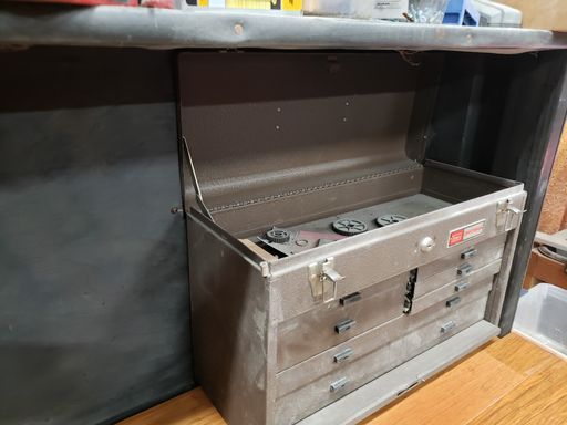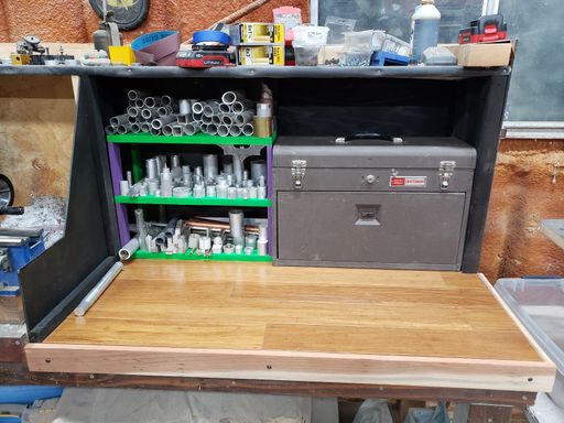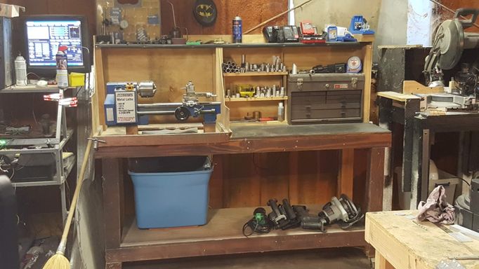 Just like so many other projects, the photos of this station's construction are lost to the digital void. The plan was brilliant, though—the side panel was designed to be removable for easy tool maintenance and expansion down the road. It was a forward-thinking idea for a workshop that was always growing. Of course, as you'll see, that brilliant idea never actually came to light.