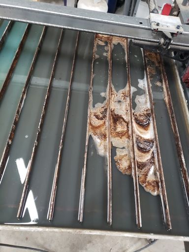 And this is the aftermath of endless cutting and endless learning. We had a few mess-ups here and there, but we learned a lot along the way. Cleaning up a CNC plasma cutter table is well... annoying, but seeing the final product makes it all worth it.