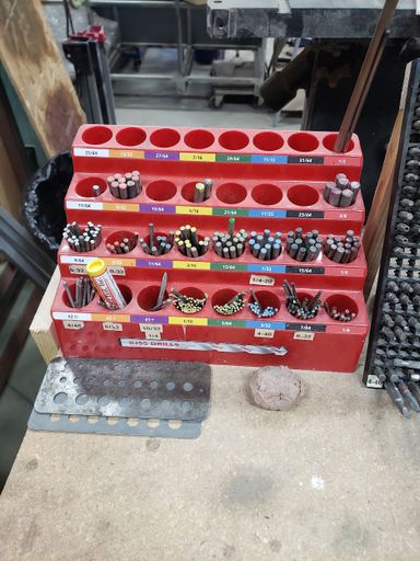 I just have to stop here and point out how much I love this Kiss stand because it already has a color-coded system. The ingenious part is that all I do is add a dab of nail polish to the back of the drill bits to match.