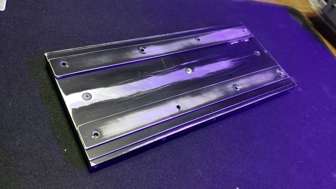 Crucial Orientation: Ensure correct part orientation. The single hole closest to the edge on the Chassis Base indicates the rear and must align with the U-shaped notch at the back of the Universal Mounting Plate.